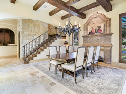 Exceptional Tuscan inspired estate! Situated on a corner lot layered with stone, brick, and Cantera accents creates authentic Italian architecture. Every luxury included: hand carved wood beams, exotic marbles and granites, 3 stone fireplaces. Kitchen boasts commercial grade appliances, dual islands, walk-in pantry, and butlers pantry with warming drawer. Master retreat with luxury bath, private patio, and dressing area. Second bedroom down with two more upstairs, each with own bath. Media room, full wet bar, and study provides space for all. Remarkable laundry room. Outdoor living provides European entertaining. pool and spa lined with imported Italian glass mosaic tiles. Private yard with extensive landscape. 3 car oversized garage has tremendous storage.