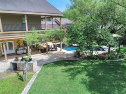 Luscious green yard greets you as you walk up to this grand Elm Creek estate located on a private green belt lot. Comfort and personality is evident as this home stands among the finest. Updates throughout, the custom kitchen brings vibrance and life, complimenting the homes clean lines and curves, blending flawlessly into the living area. An outdoor covered patio extends your comfort from inside to out, with expansive views of the backyard and pool to enjoy your evenings dining with guests or whispering with the wind in the trees.