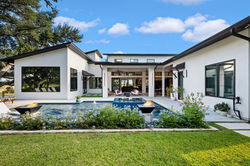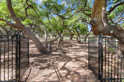 ​​ Exquisite and custom-built, this one-story estate sits on a sprawling 1.18-acre lot adorned with majestic heritage oak trees in the exclusive gated community of Belle Oaks Ranch. Designed with the sophistication of a luxury parade home, this residence showcases ultra high-end finishes, meticulous craftsmanship, and state-of-the-art amenities throughout. Step through a modern pivot front door into an expansive open-concept living space featuring soaring 26-foot ceilings and dramatic volume. Dual panoramic sliding doors blur the line between indoor and outdoor living, opening onto an expansive patio area-both covered and uncovered-complete with a fully equipped designer outdoor kitchen finished to the same impeccable standards as the interior. The chef's kitchen is a showstopper, featuring 54" upper cabinetry, quartz countertops and backsplash, and a striking leathered granite waterfall island. Premium Fisher & Paykel appliances include a two-oven gas range with oversized griddle, dual dishwasher drawers, and a built-in refrigeration wall with refrigerator, wine fridge, and freezer. A separate bar area with its own dishwasher drawer and nugget ice maker adds a perfect touch for entertaining. The walk-in pantry offers exceptional functionality with built-in cabinetry, shelving, prep counter, microwave, and warming drawer. Nearby, the mudroom and oversized laundry room add daily convenience with a center island, built-in desk, and space for a secondary refrigerator. The luxurious primary suite is a serene retreat with private outdoor access, blackout shades, and a spa-like bathroom featuring a freestanding tub, oversized walk-in shower, and a jaw-dropping, two-story 500 sq. ft. closet with custom built-ins and a vanity. Secondary bedrooms are generously sized, each offering en suite bathrooms and walk-in closets. A dedicated office provides an ideal space for work or study. The backyard is a private oasis, professionally landscaped and designed for resort-style relaxation. Enjoy a custom pool and spa with dual sun shelves and water features, all surrounded by lush greenery. A circular drive, oversized driveway, and 3-car garage with 8-foot doors offer ample parking and functionality. Built for comfort and efficiency, the home features full foam insulation and a drip irrigation system for low utility costs. Belle Oaks Ranch amenities include a clubhouse, pool, playground, tennis court, pickleball, and basketball courts-just minutes away.