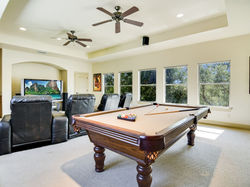 Exceptional estate is perfectly situated on two lots and tucked behind its own personal curtain of trees. Soaring foyer greats you with high-ceilings, warm elegant accents and quality throughout. Open kitchen with expansive views of living, impeccable landscaped outdoors, and pool. Master suite downstairs with luxurious bath. Upstairs experience space for everyone: spacious bedrooms, game room, balcony to enjoy the extraordinary view for miles. Total privacy outdoors with trees galore. 3 car garage. Controlled guarded access.
